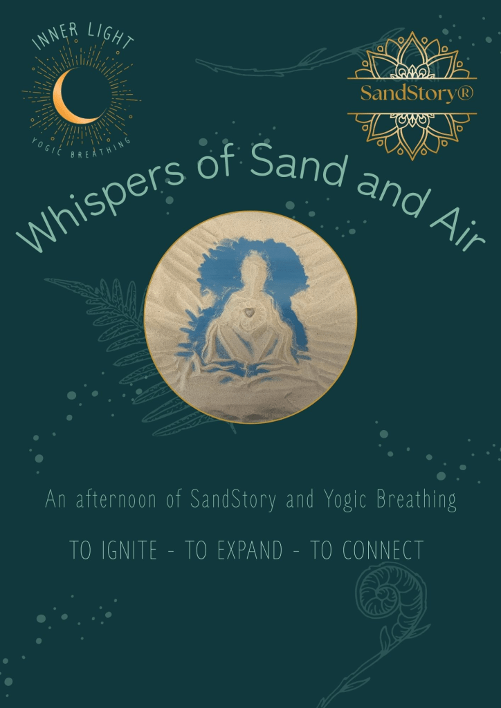 Whispers of Sand and Air is a calming afternoon retreat that blends SandStory, a tactile and expressive sand-tray practice, with Yogic Breathing that soothes the body and steadies the mind. Together, they create a warm, spacious container where you can slow down, reconnect, and gently invite your inner light to rise.